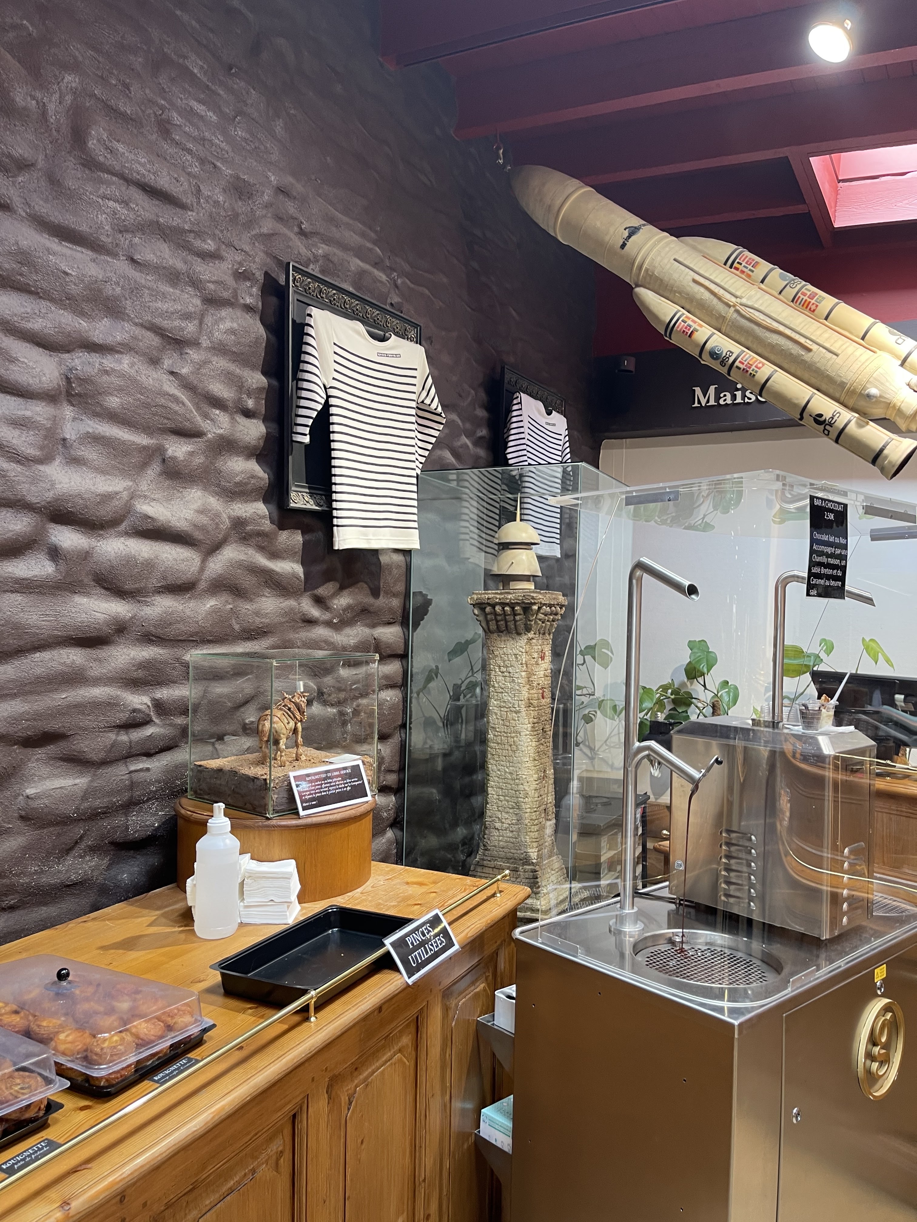 Pour les gourmands de chocolats c'est un arrêt indiscutable ! Allez jusqu'au fond du magasin pour déguster un verre de chocolat fondu accompagné de Chantilly et sablé breton !