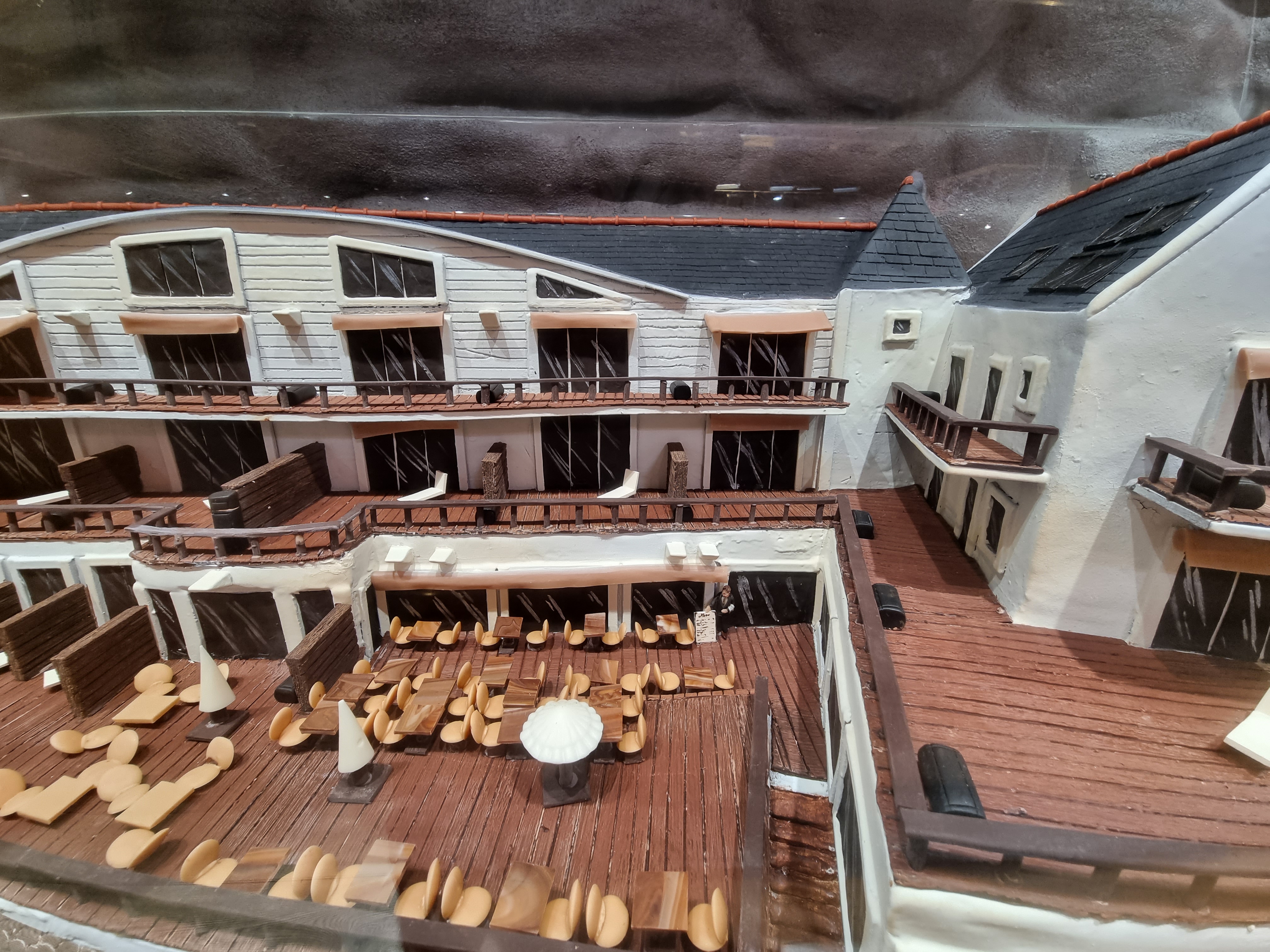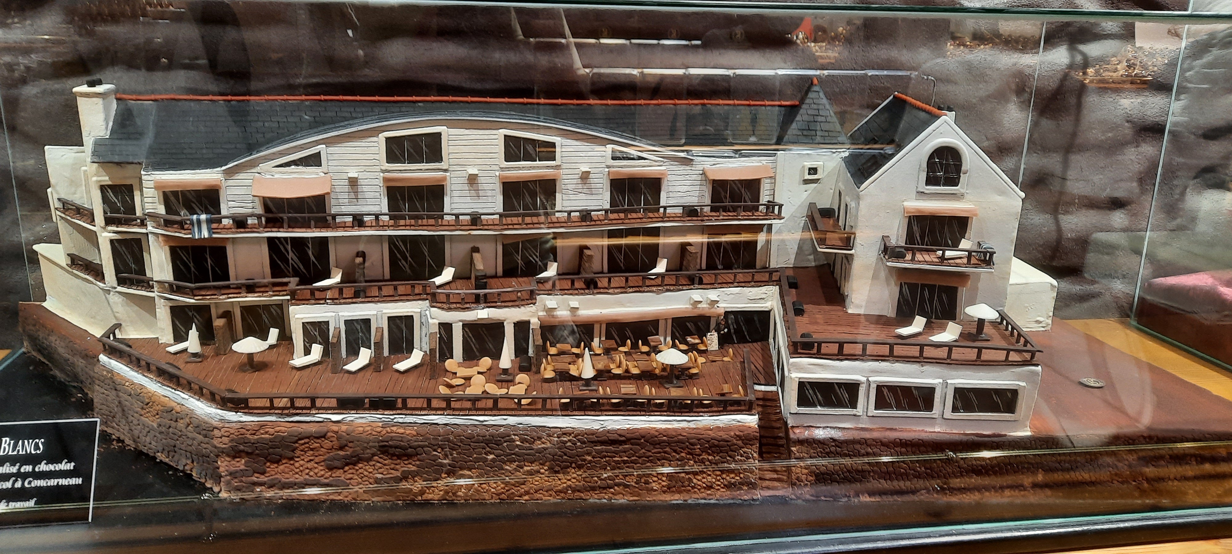 belle endroit pour tester la volonté de votre régime , ici le mot artisan prends tous son sens ,avec cette maquette de l hôtel des sables blanc tout en chocolat par exemple , délicieux , je recommande un arrêt à cette boutique lors de votre passage dans la rue centrale de la ville close