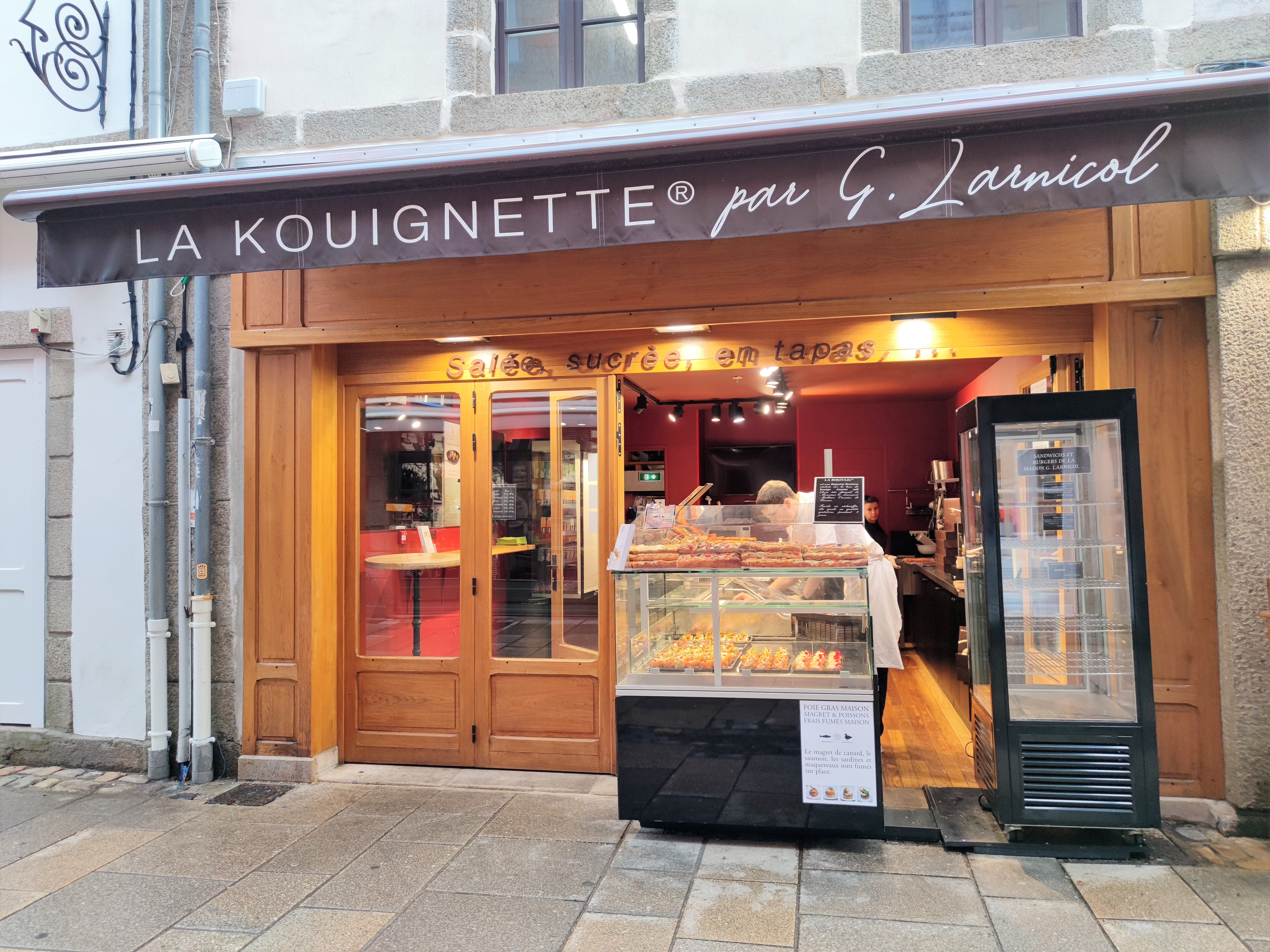 Lieux magique avec 2 boutiques face à face ... une grande pour le sucré et une petite pour le salé. n’hésitez pas à rentrer. Les kouignettes y sont délicieuses ! J'ai adoré aussi les torchettes nature très saines et très subtiles et qui se conservent très bien plusieurs mois. A FAIRE ABSOLUMENT !